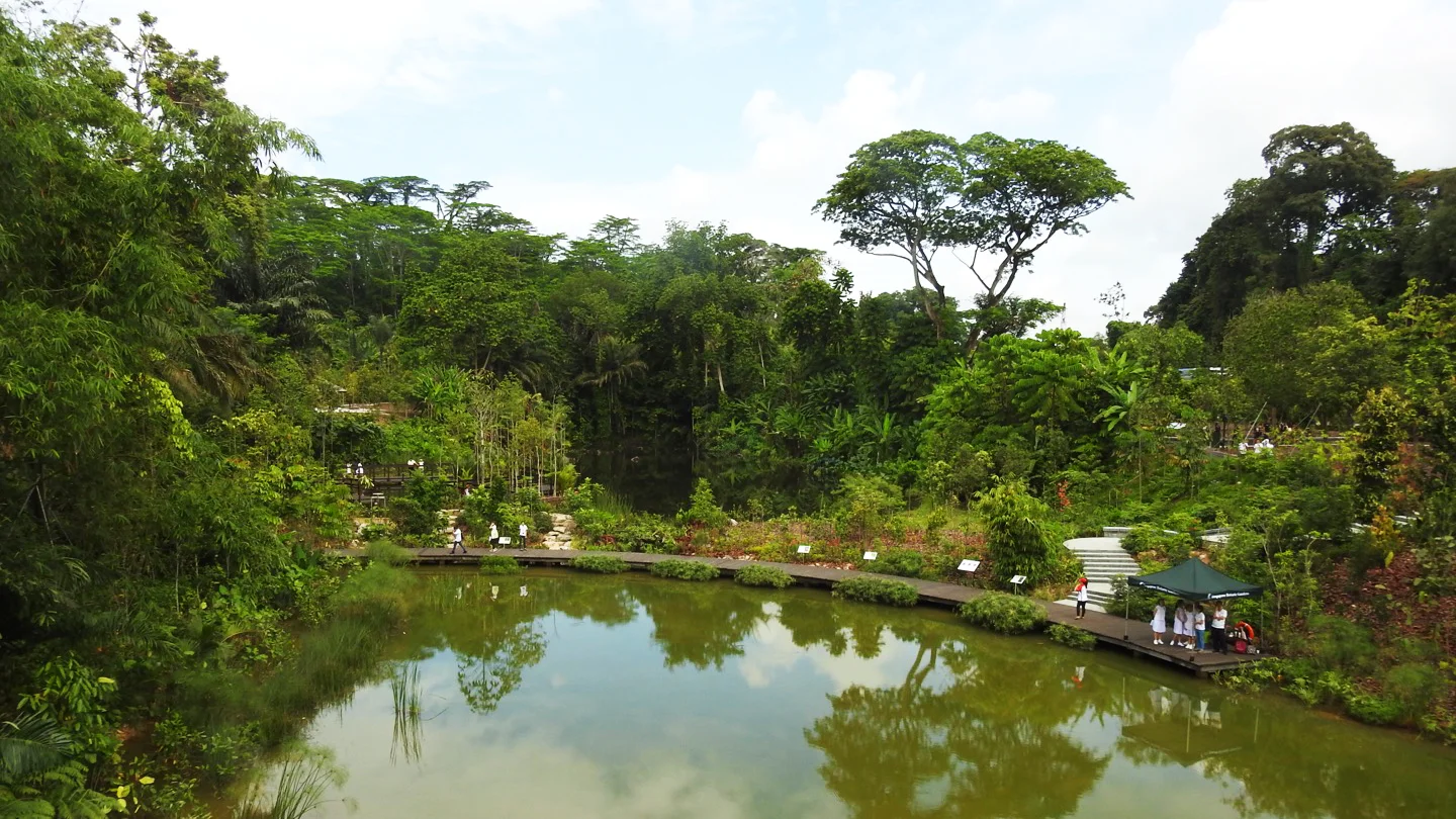 Visitors can view themed areas such as the freshwater swamp forest - Keppel Discovery Wetlands; the bambusetum area; the wild fruit and nut tree collection; the conserved lowland forest which includes the SPH Walk of Giants and the canopy web.