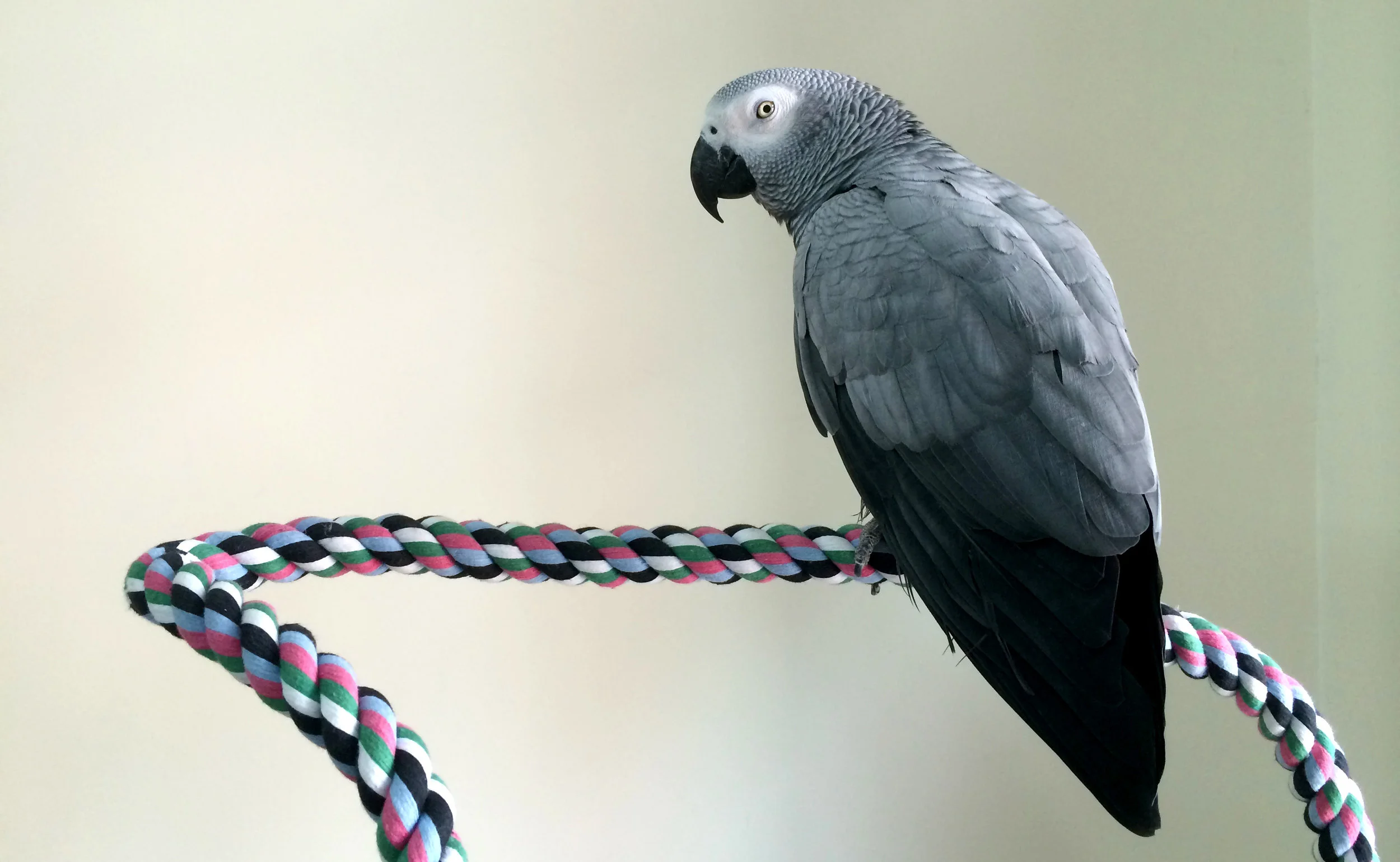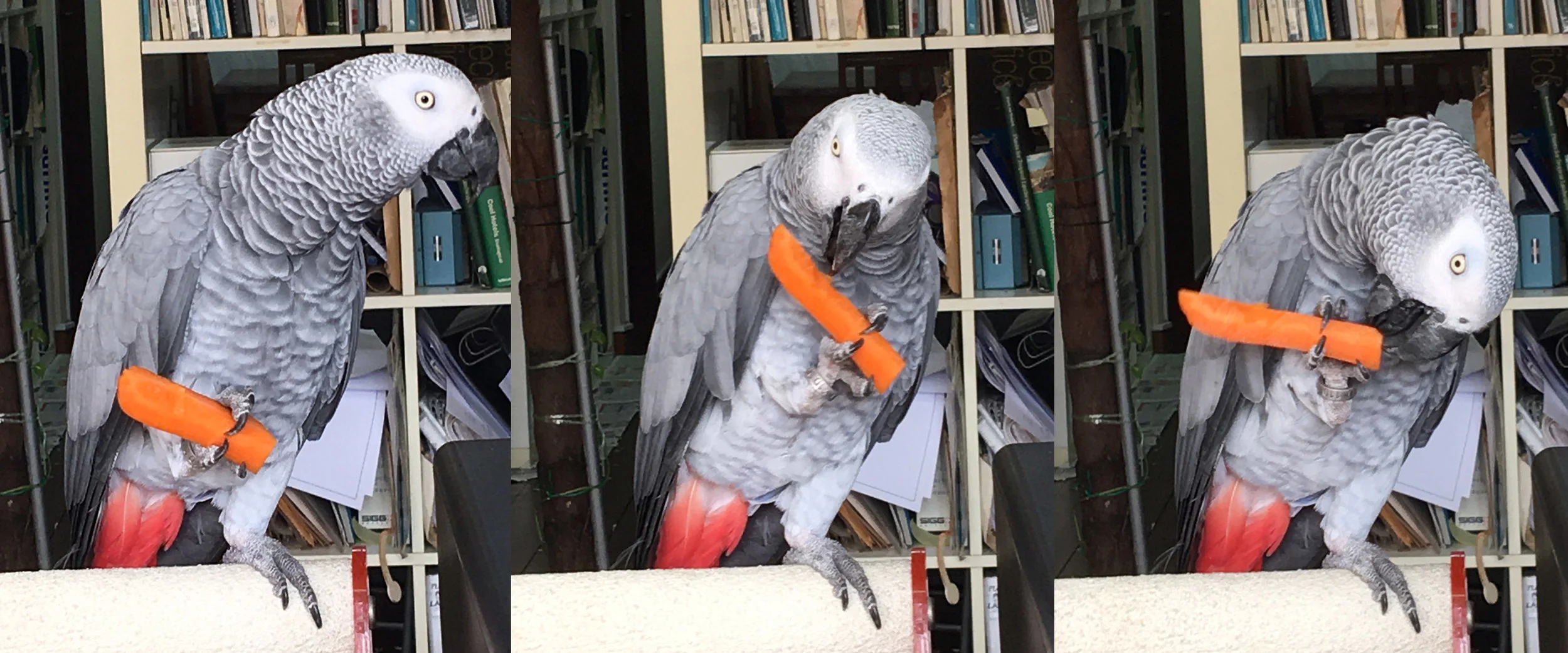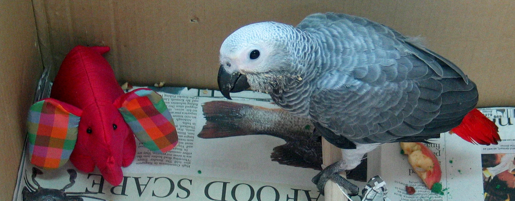Favourite Things: Paper and card, To steal stuff and fly away laughing, Red things, Food, being out of the cage for as long as possible, Imitating phone conversations.