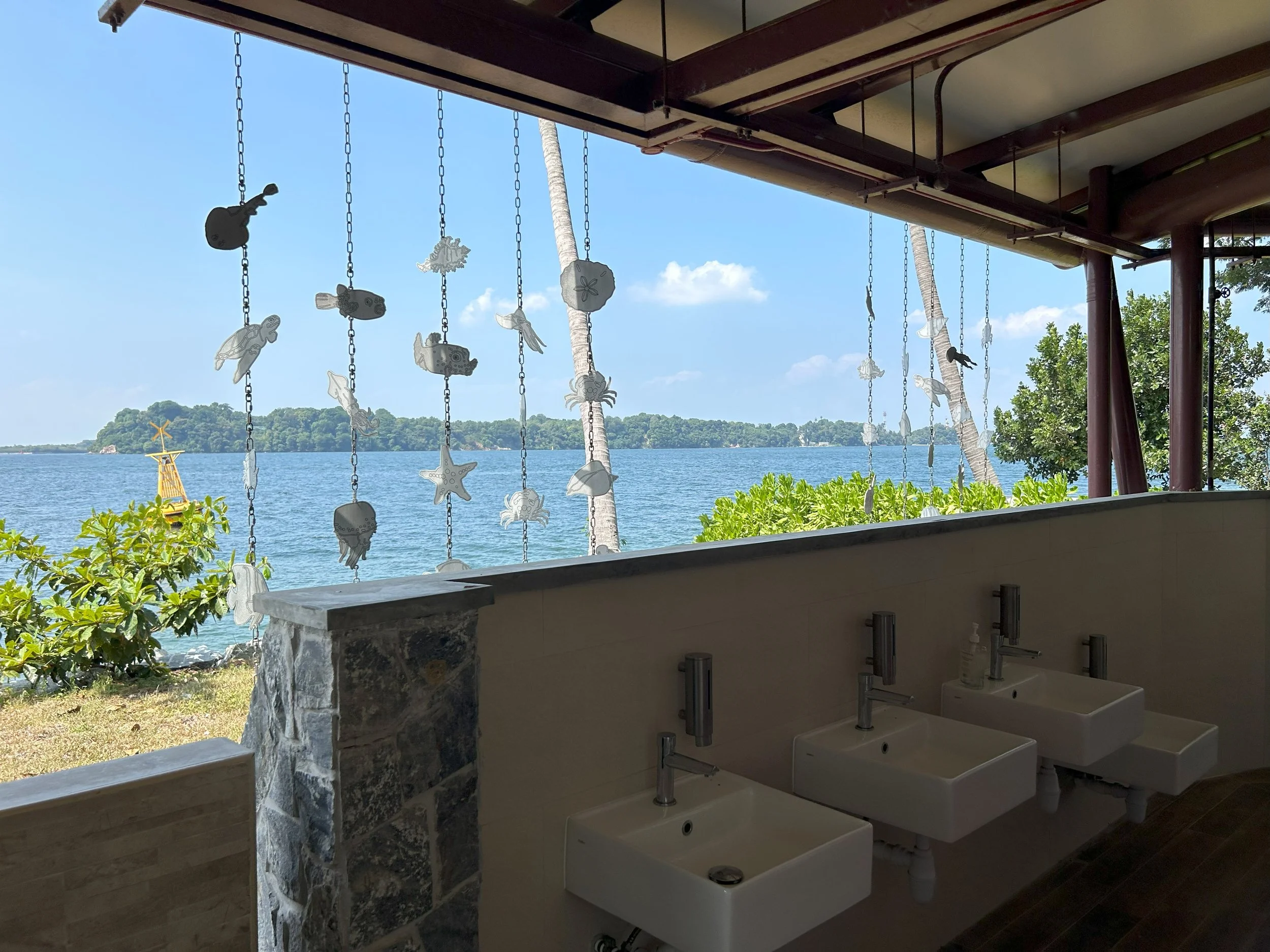 The Toilets & Changing Room building at Sisters’ Islands Marine Park is regarded as having the best view from the hand washing area for any toilet building. It has wide views across the sea to St Johns Island and to Singapore’s skyline on the mainland. The building is designed on sustainable principles with natural ventilation and natural lighting. The private areas such as the toilet cubicles and changing rooms use secondary illumination from Solar Tubes positioned in the roof which transmit sunlight using reflective surfaces. Water for drinking, hand washing, and flushing is provided by the small desalination plant, which is in turn powered by the solar farm.