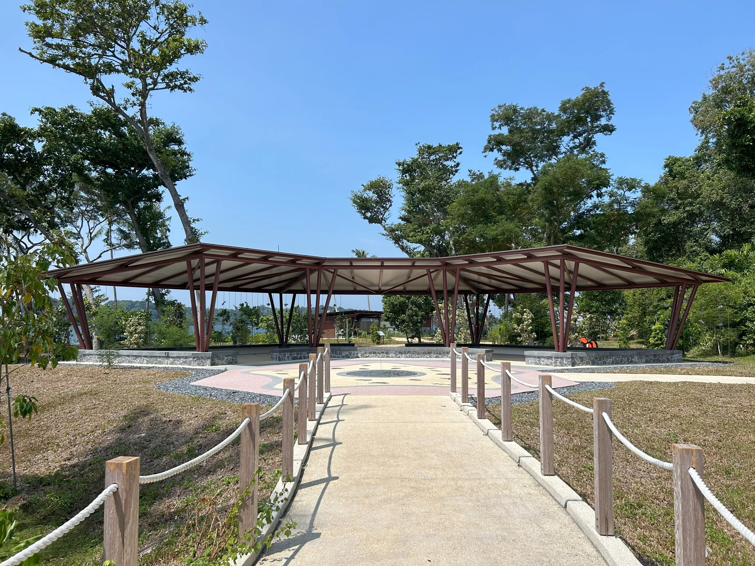 The journey to Big Sister's Island begins with a ferry trip from Marina South Pier. Upon arrival at the jetty, visitors then move to the Arrival Plaza and Pavilion. This area is designed as the main assembly area on the island for groups and visitors, in case of emergencies, and the Pavilion provides shelter and shade for visitors and alternative use as an outdoor classroom for educational visits.