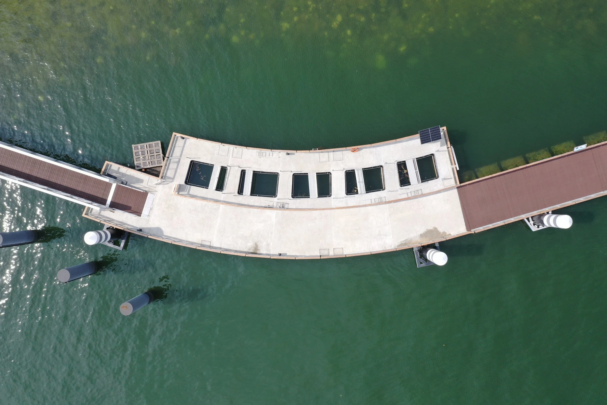 To support marine research, five "Moon Pools" were incorporated into a fenced section of the floating boardwalk. These openings, equipped with gangways, grab rails, and portable ladders, provide a secure and accessible environment for universities, polytechnics, and other research institutions to conduct studies.